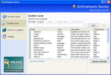 Antimalware Physician is a fake antivirus plan which is presently installing itself onto one,000's of computer systems about the Planet every single day, causing havoc wherever it goes. Despite the fact that this system could possibly fool some newcomers, to the knowledgeable eye it should really be clear that it really is up to no really good on your plan... but the correct extent of its infectious activities are definitely staggering. Apart from displaying fake antivirus final results, this virus will block your Online access, stop you from loading the "Windows Job Manager" as nicely as attempting to steal your individual info & passwords. The bottom line with this infection is that it requirements to be removed as rapidly and reliably as feasible - which may perhaps be carried out using this tutorial.This virus is really a software program plan which performs a large quantity of issues on your program. This signifies that you should really remove it by means of deleting the diverse components of the computer software which it is using to run, which includes the "Plan Files" it demands, as effectively as the settings, possibilities and other components it might have as nicely. The only situation with the Antimalware Medical professional virus is that it in fact keeps a big quantity of hidden codes & files about your Computer in order to attempt and save itself if it really is only partially deleted. These hidden codes are the most challenging part of the virus to remove, and need to have the true technique / system to remove them.In order to remove this virus, you ought to appear to remove these components of the infection from your program: Remove its fake system files Remove its corrupt settings & selections Remove all the hidden files it has placed onto your plan The way to take away the Antimalware Medical doctor virus is to use a "malware removal tool". These are professionally created tools, which actually scan by way of your plan and remove all components of the infections your program has, enabling the full removal of the virus. The system "XoftSpy" is the most effective at finding rid of Antimalware Medical doctor, as it is able to take away all the system files the viruses uses, as effectively as any infected files stored in the "Windows" folder of your program. Developed through a huge Canadian business, XoftSpy is extensively regarded as one of the most well-liked anti-malware applications you may use. You may very well use it by way of downloading it onto your plan, installing the plan and then letting it scan your Computer, where it will then remove all the infections your Pc has.